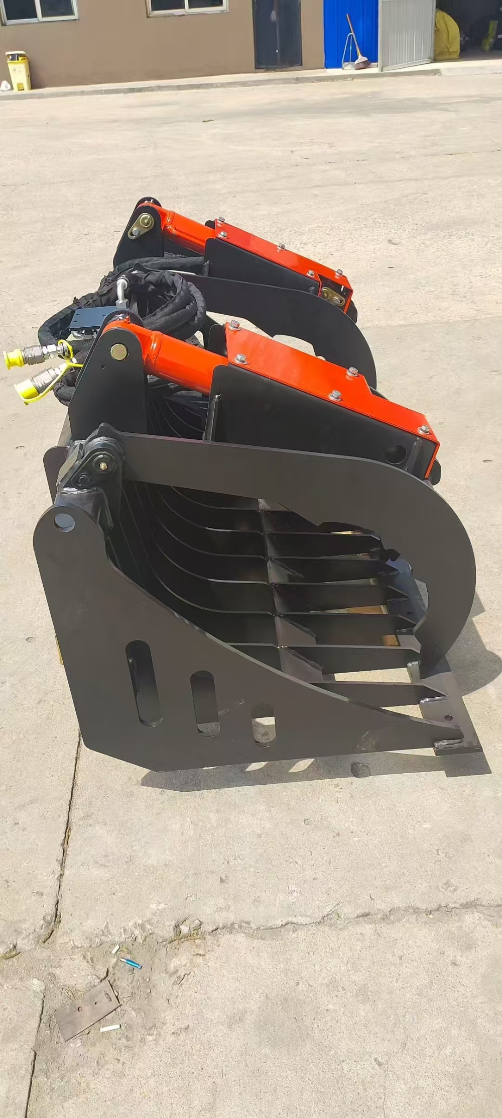 The Skid Steer Loader Grass Grapple is a specialized hydraulic attachment engineered for skid steer loaders, designed to efficiently grasp, lift, transport, and stack loose or bulky vegetation materials such as hay bales, straw, grass clippings, branches, and compost. Unlike standard buckets that struggle with lightweight or irregularly shaped forage, this attachment features a dual-clamp or tine-based structure that provides flexible yet secure gripping force—preventing material spillage during movement. It is widely used in agriculture (livestock feeding, hay management), landscaping (yard waste cleanup), forestry (brush clearing), and waste management (compost handling). By leveraging the skid steer’s compact mobility and hydraulic power, it replaces labor-intensive manual handling (e.g., 2–3 workers using pitchforks) and reduces operation time by 60–80% for tasks like hay bale stacking or grass collection.1. General Definition and Core Function